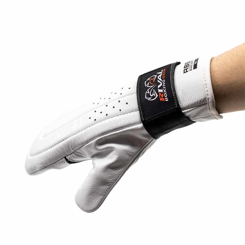 The Rival RB5 White Bag Gloves are made of 100% leather . Featuring the patented Ergo-Lite System, these Rival bag gloves fit like a glove.