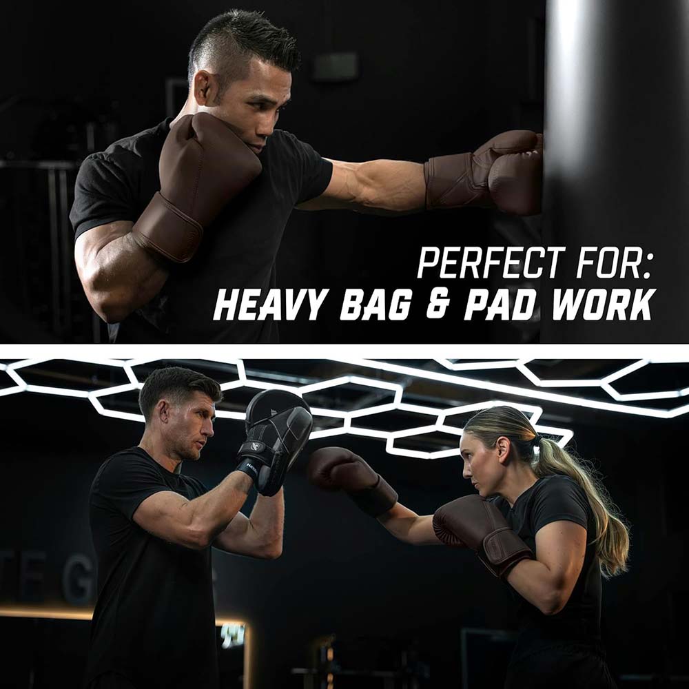 The T360 Leather Boxing Gloves elevate a classic aesthetic by utilizing full-grain aniline leather, known for its luxurious texture, exceptional durability, and signature character.