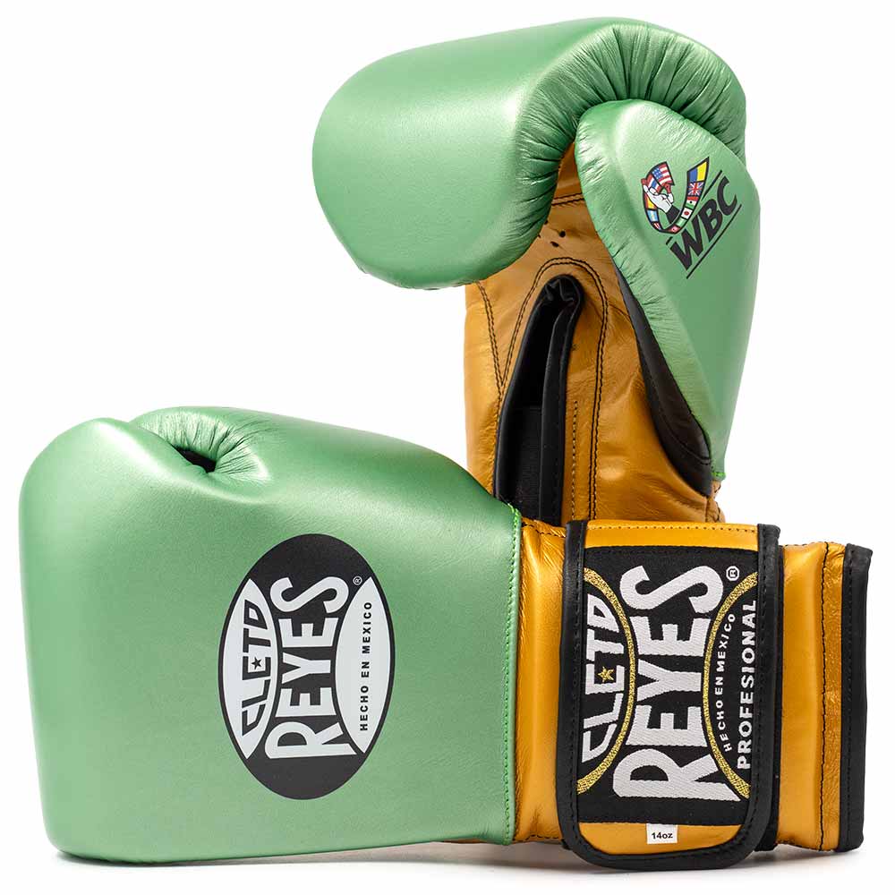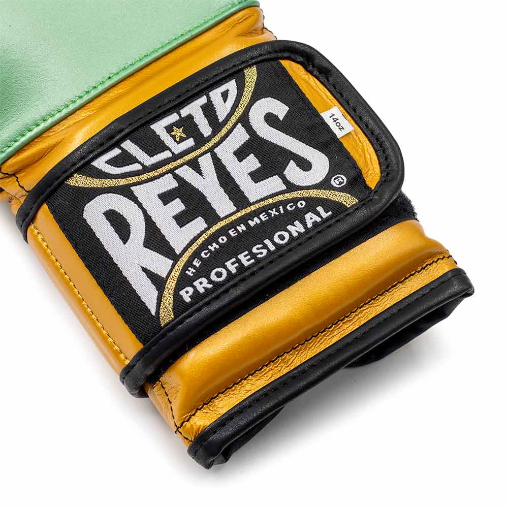 All Cleto Reyes products are handcrafted in Mexico. Big names in the rich and glorious history of WBC boxing are fans of Cleto Reyes. And the Cleto Reyes Velcro Sparring Green Gold boxing gloves are truly something special.