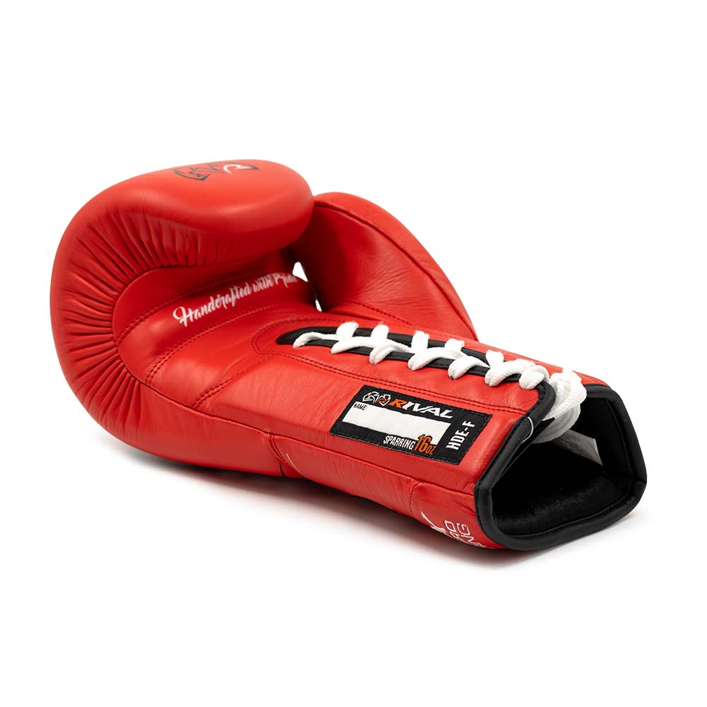 The Rival RFX Guerrero Sparring HDE-F Red Boxing Gloves (laces) are handmade from the finest cowhide leather. The red Rival boxing gloves are used by a number of world champions and #1 contenders. The Rival boxing gloves are designed to provide the same fit and feel as our ever-popular crown jewel, the RFX-Guerrero Pro Fight Glove. But with added protection, plus a lace-up closure for the optimal fit.