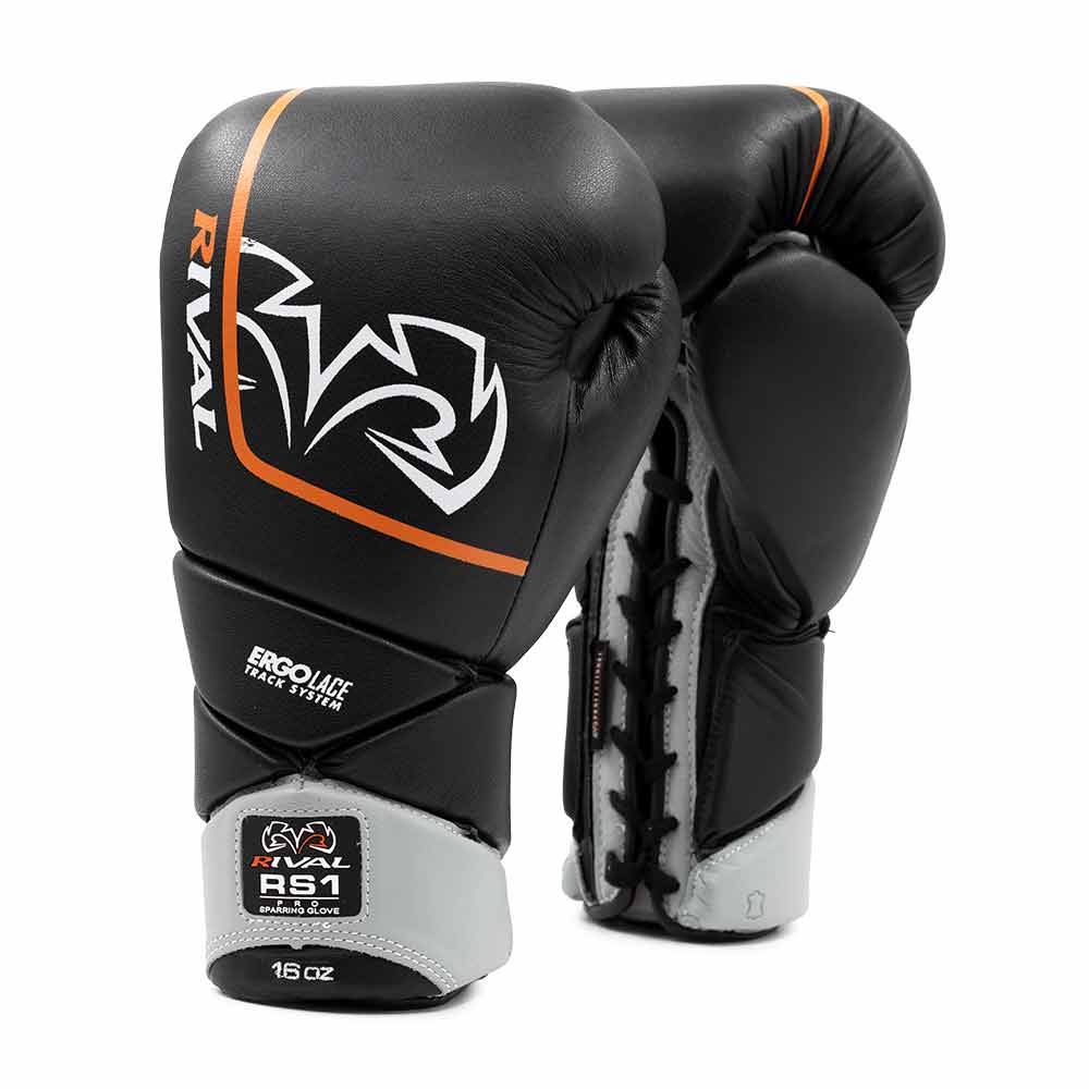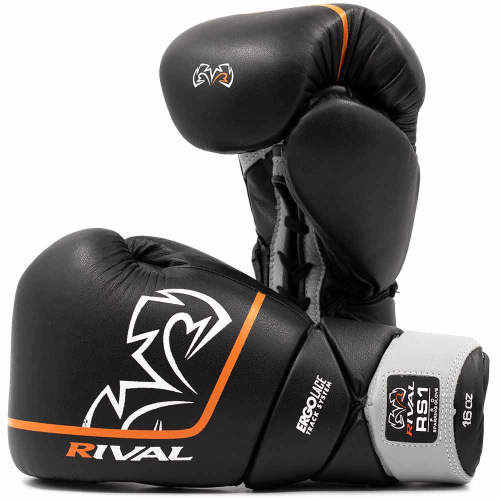 The RS1 Pro Sparring 20A Black gloves feature a unique closure system: the Angled Ergo Lace Track System. Rival boxing gloves are among the absolute top-of-the-line in boxing. All Rival products are the result of years of scientific research and development.