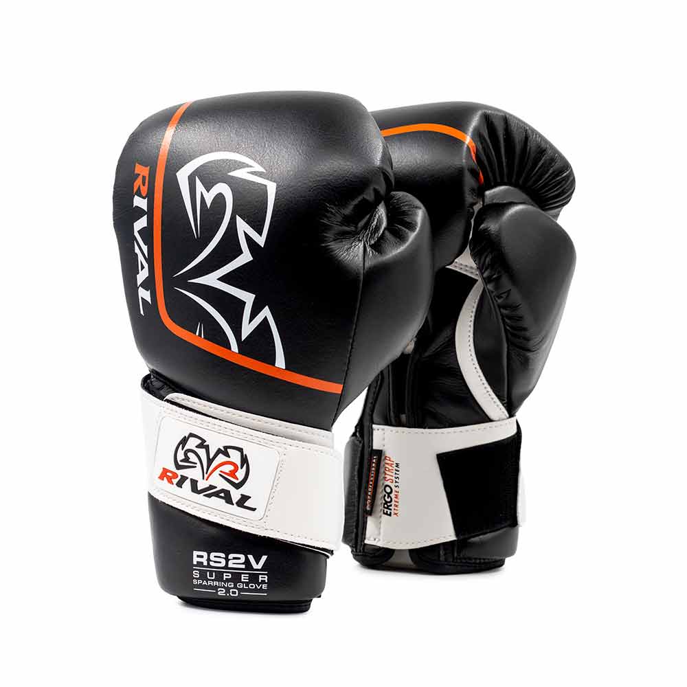 The Rival Super Sparring RS2V Black 2.0 boxing gloves are made of patented, ultra-durable microfiber. The Rival boxing gloves feature extra wrist padding and a comfortable grip bar. The Rival RS2V therefore fits like a glove.
