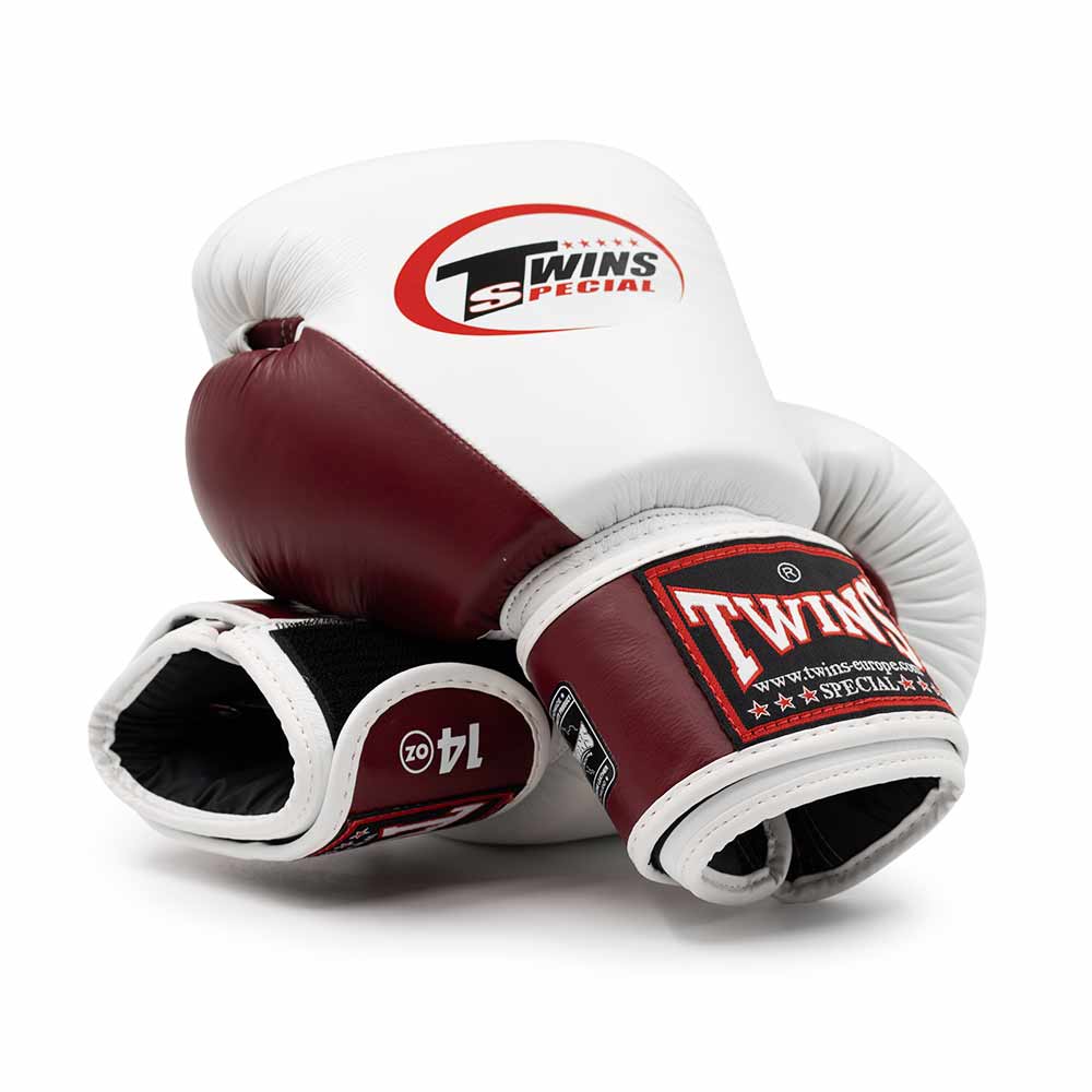 The Twins BGVL3 Burgundy White boxing gloves are the standard in boxing gloves. This is the classic color line from Twins Special, made in the homeland of Muay Thai.