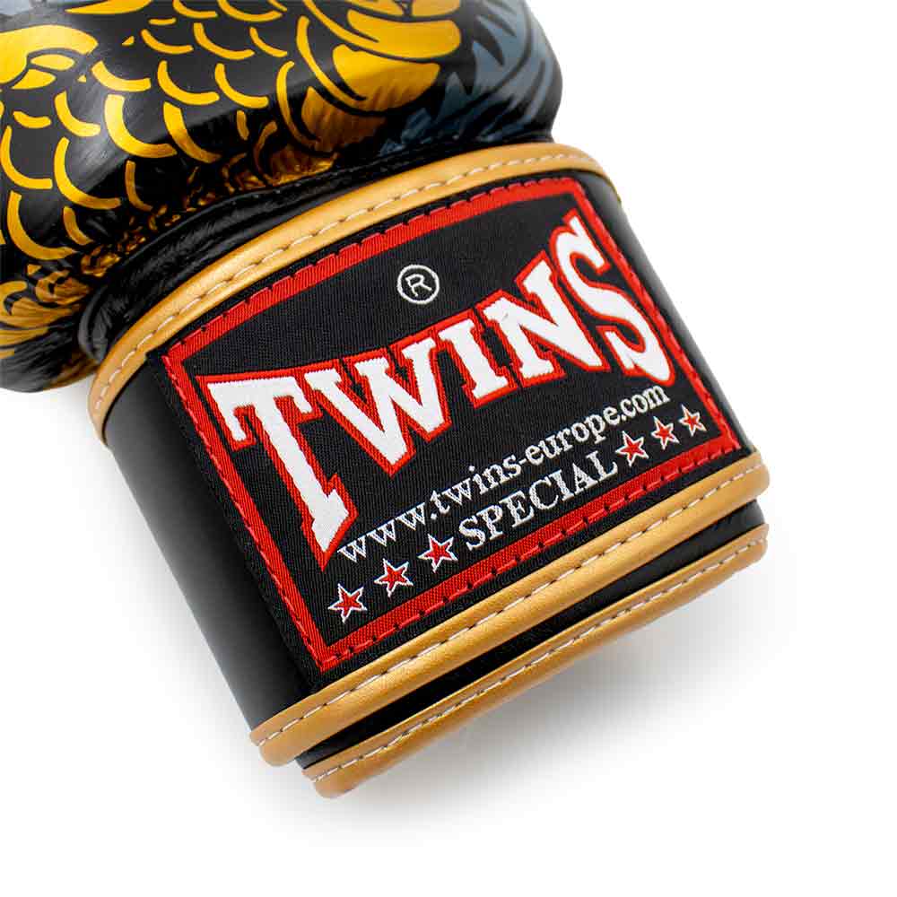 The Twins FBGVL52 Naga boxing gloves perfectly match many black, white, or grey shorts and shin guards. These Twins boxing gloves are clearly distinguishable from all other boxing gloves with a truly unique and eye-catching design!