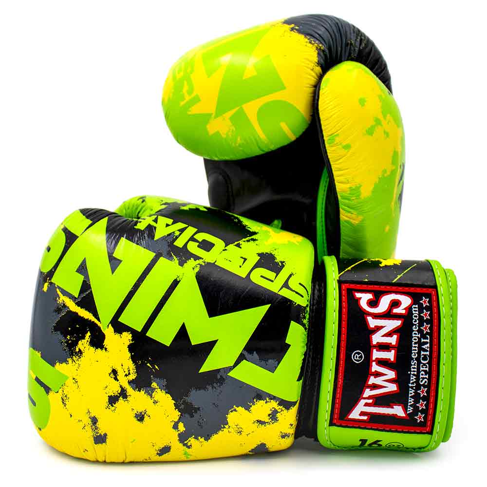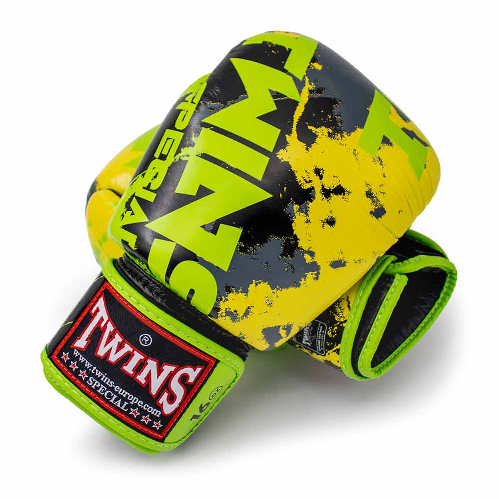 The Twins FBGVL61 Kaos boxing gloves perfectly match many black, white, or grey shorts and shin guards. These Twins boxing gloves are clearly distinguishable from all other boxing gloves with a truly unique and eye-catching design!