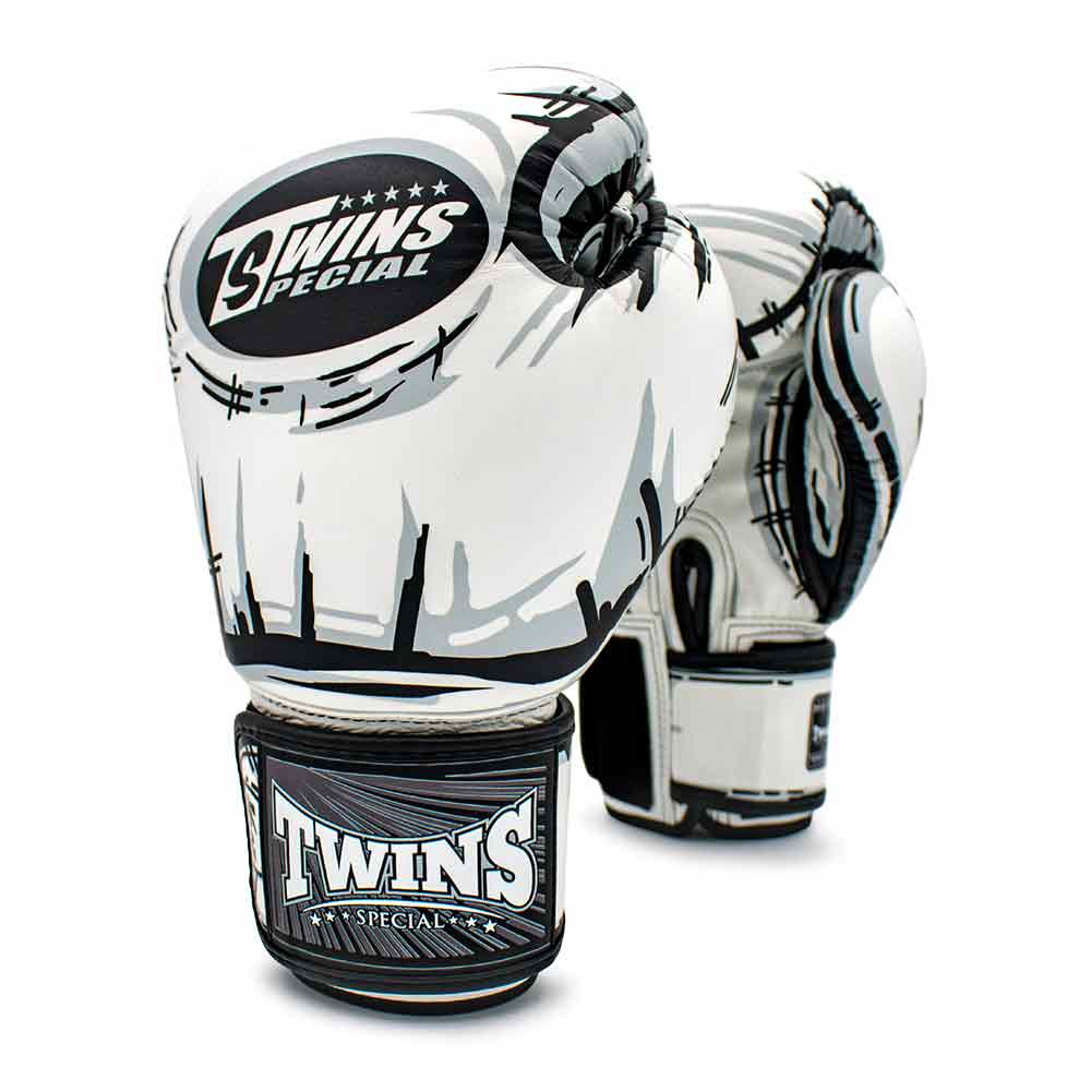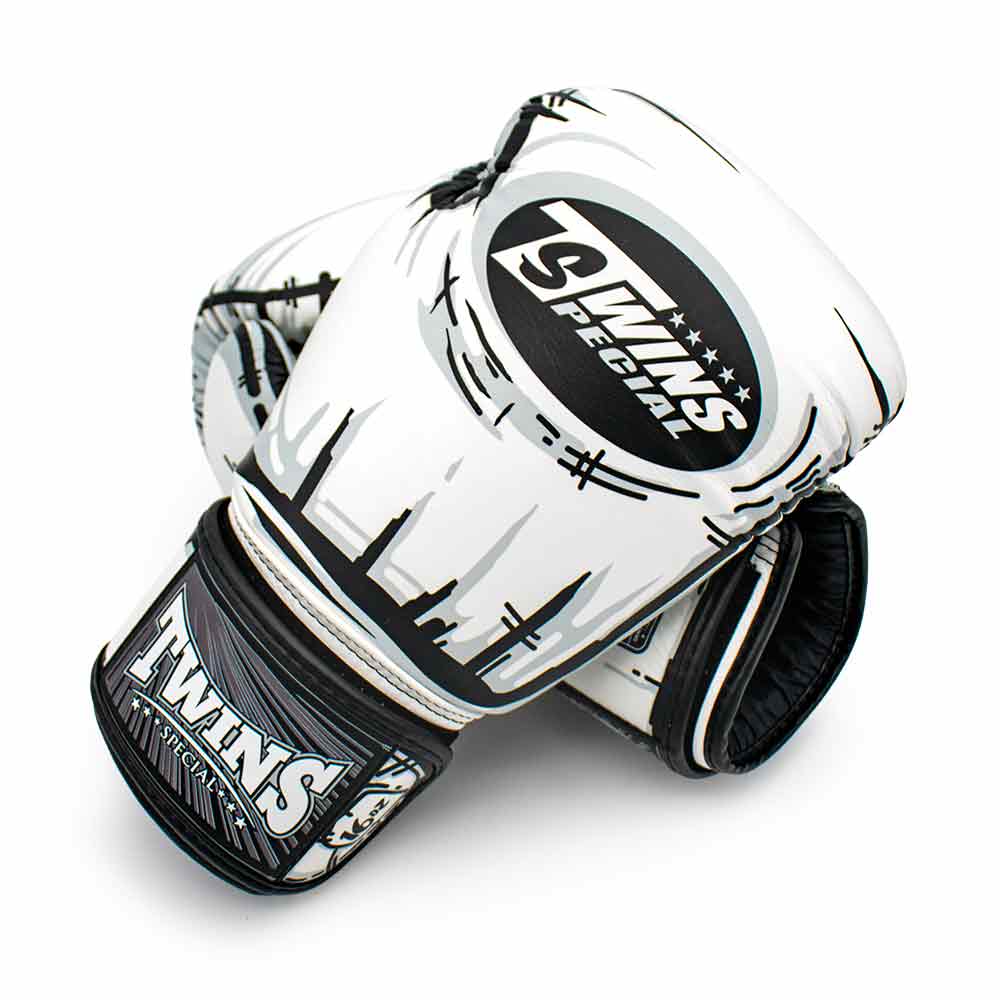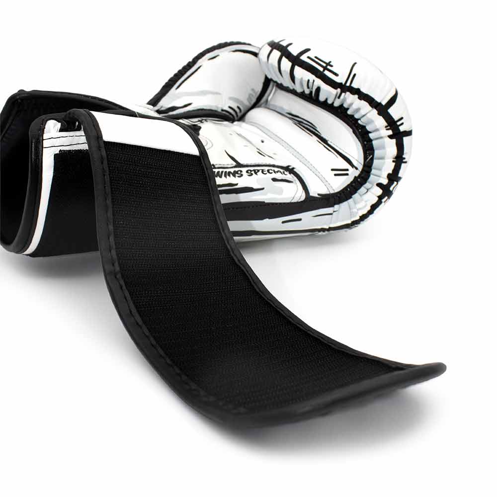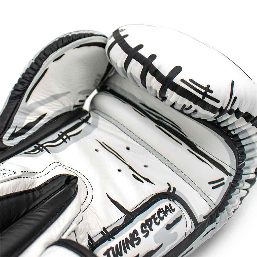 The Twins FBGVL66 Comics boxing gloves perfectly match many black, white, or grey shorts and shin guards. These Twins boxing gloves are clearly distinguishable from all other boxing gloves with a truly unique and eye-catching design!