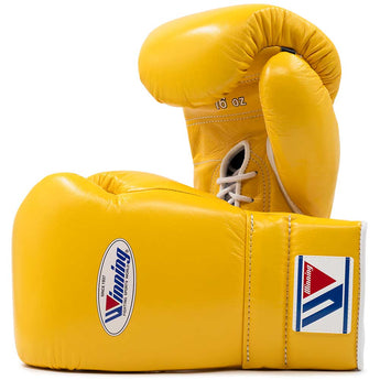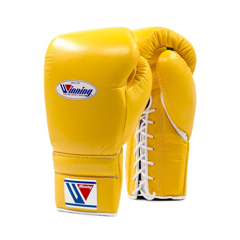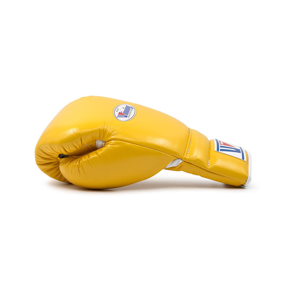 The Winning MS600 Yellow boxing gloves (lace-up) are made from the finest quality leather. Winning boxing gloves undergo rigorous quality control throughout the entire development process. Only the very best pairs are sold. The sewn-on thumb prevents eye injuries and also protects the thumb from injury.