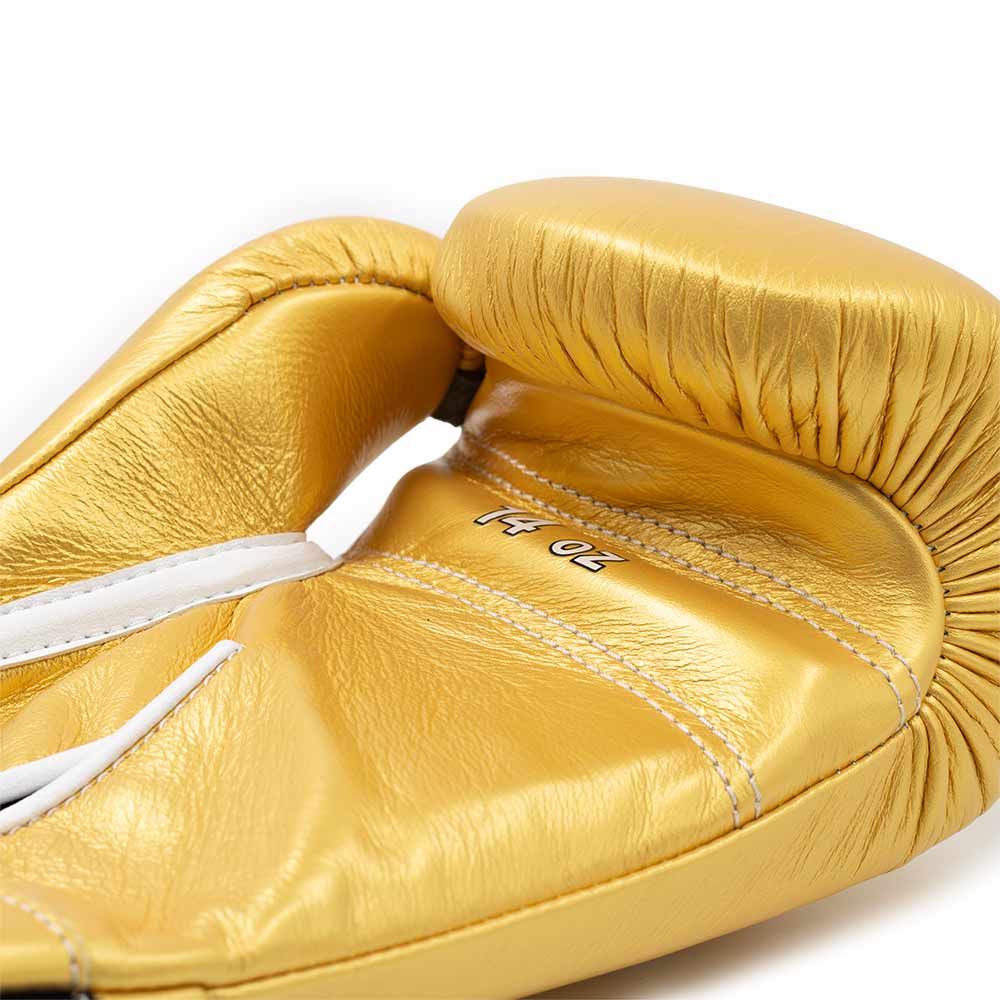 The Winning MS600B Special Gold boxing gloves are made from the finest quality leather. Winning boxing gloves undergo rigorous quality control throughout the entire development process.