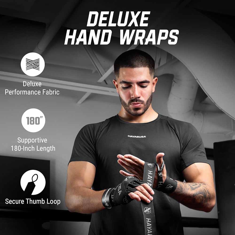 With the Hayabusa Deluxe 460 cm handwraps, your hands are optimally protected. The black, premium Hayabusa handwraps are made from the finest nylon yarn, providing the perfect amount of stretch.