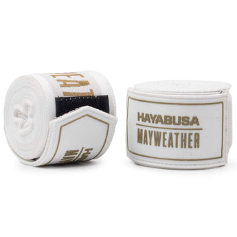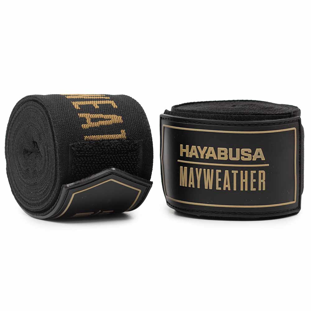 The Hayabusa Mayweather Deluxe 460 cm light-elastic handwraps are sold as a pair and are available in various colour combinations: black-gold, black-silver and white-gold.