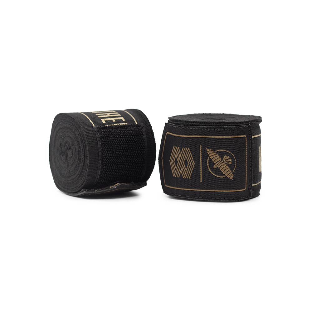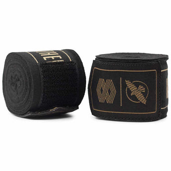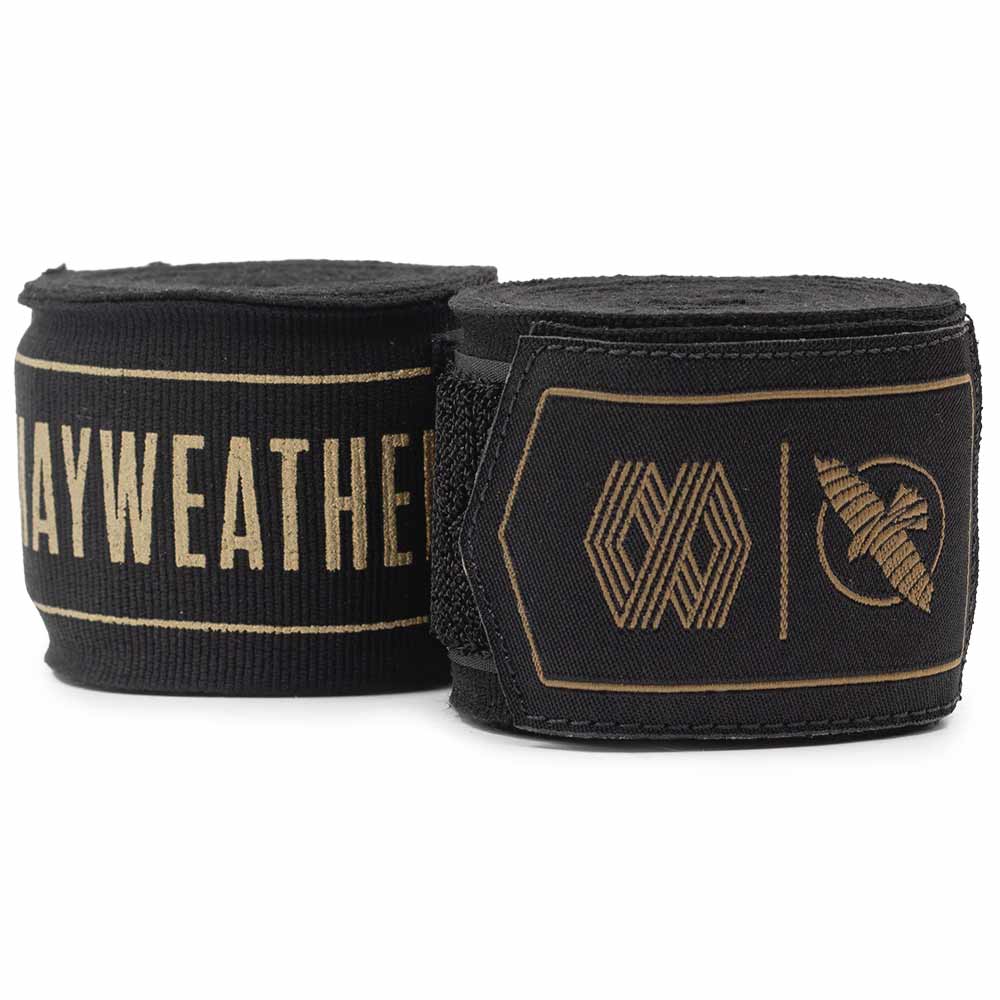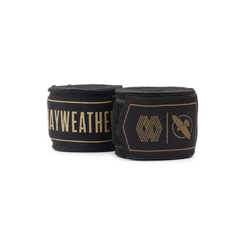 The Hayabusa Mayweather Stretch light-elastic handwraps in black and gold are sold as a pair and are available in size: 460 cm.