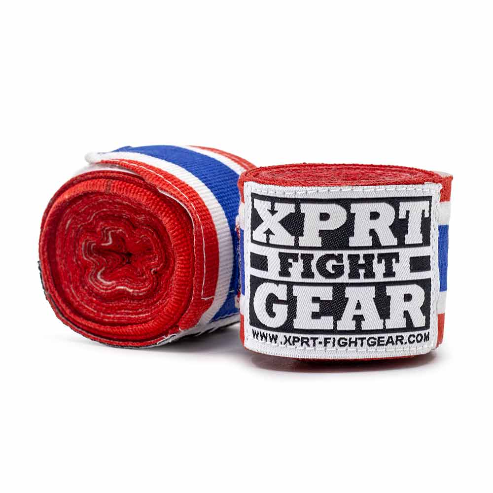 With the Bandages XPRT Easy Stretch Nations Thailand, your hands and knuckles are optimally protected . The red, white, and blue XPRT bandages are made of cotton and polyester, which ensures the perfect amount of stretch . The bandages are comfortable and provide essential support and protection.