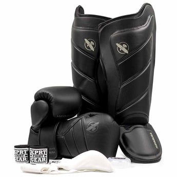 Of course, this complete set also includes matching black Hayabusa shin guards. To make the Hayabusa Kanpeki Kickboxing Set even more attractive, the shin guards are designed to match the boxing gloves.