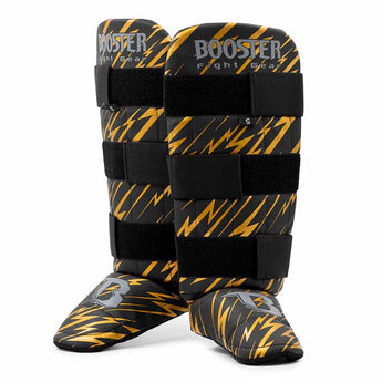 The stylish design of the Combat series, featuring striking lightning bolts and the Booster logo, not only enhances its visual appeal but also allows young martial artists to express their individuality. The Combat shin guards are available in various colors and sizes.