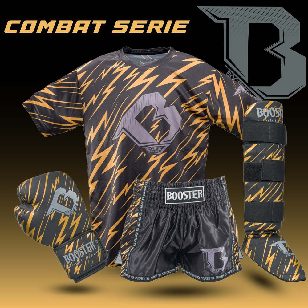 Complete your child's outfit with the Booster Combat Black-Gold Kids' T-shirt. This shirt is carefully crafted and offers both comfort and quality, making it an ideal choice for little fighters.