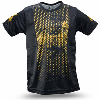 Complete your child's outfit with the King Pro Hexagon Gold Kids T-shirt. This shirt is meticulously crafted and offers both comfort and quality, making it an ideal choice for little fighters.