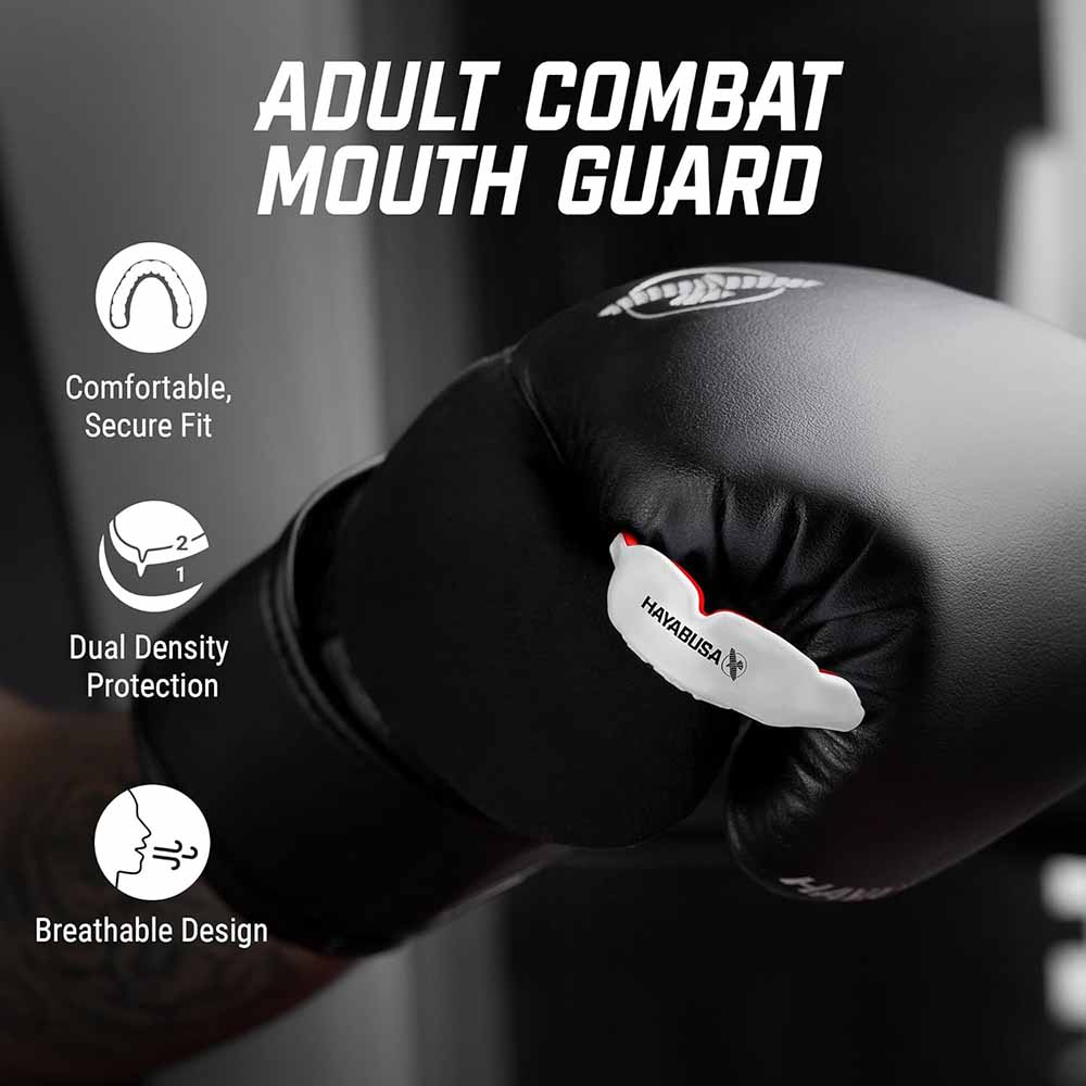The dual-density structure of the Hayabusa Combat mouthguard is designed to effectively protect your mouth and teeth. A mouthguard provides excellent protection against potential injuries to your teeth, jaw, lips, and gums, making it essential for any serious fighter.