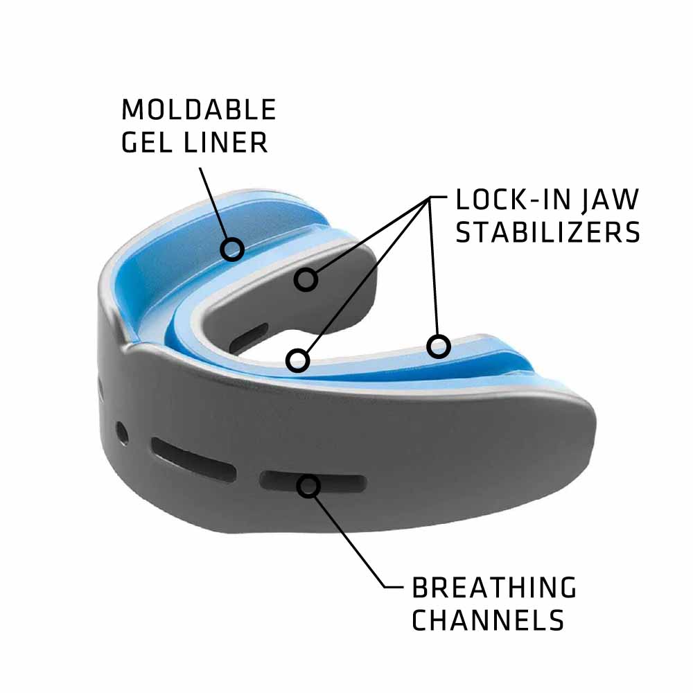 This allows the Shock Doctor Nano mouthguard to absorb and distribute shocks and impacts very well, preventing dental damage during sports.