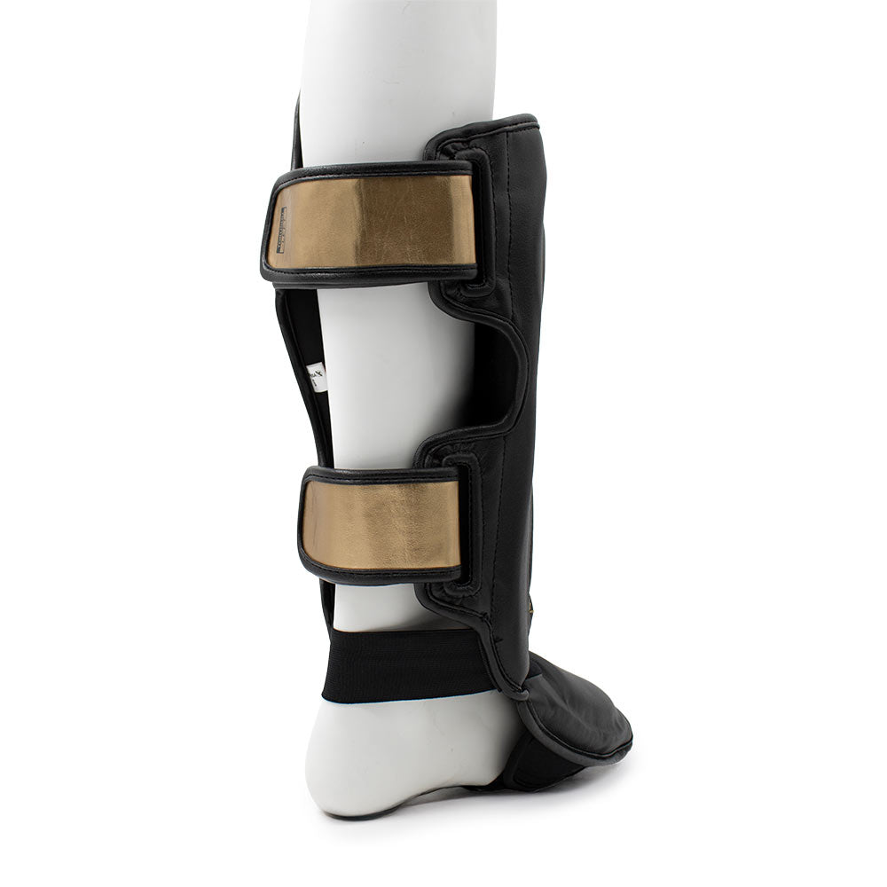 The black and gold Hayabusa shin guards are also incredibly beautiful, and matching Hayabusa boxing gloves are available for purchase.