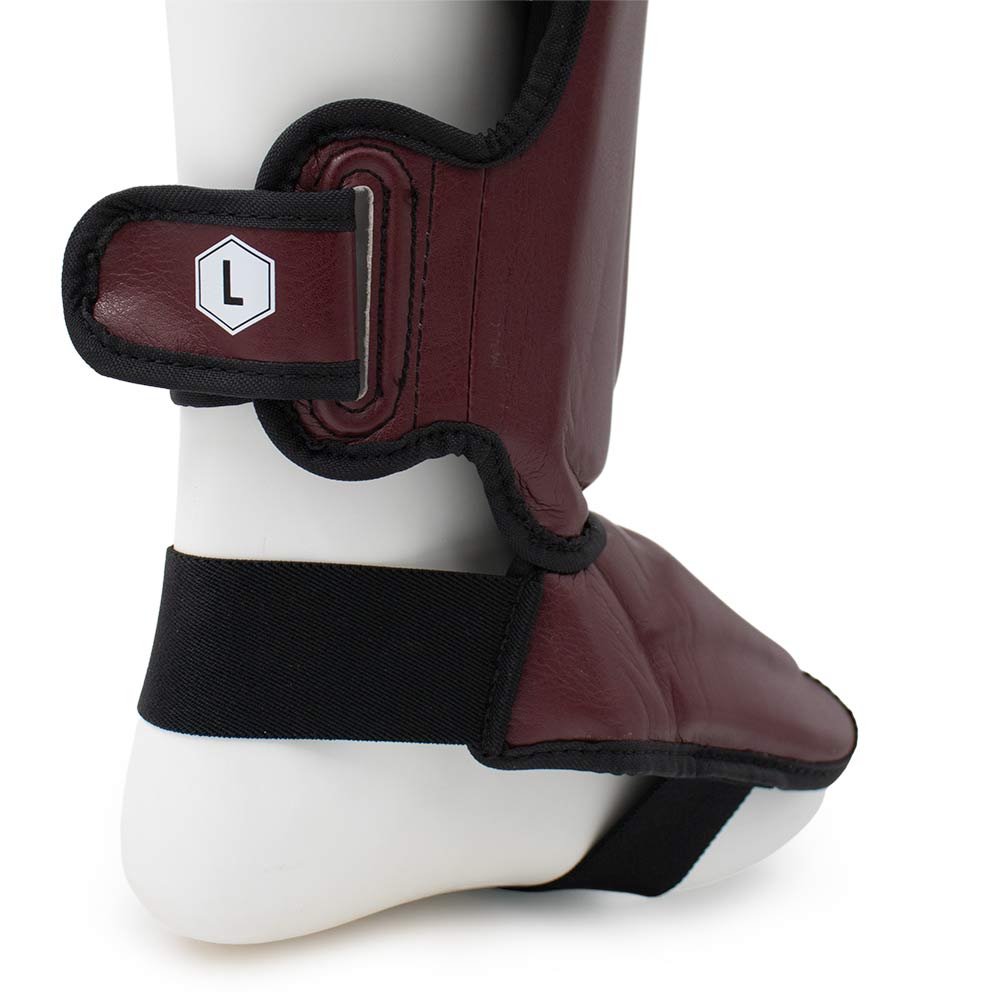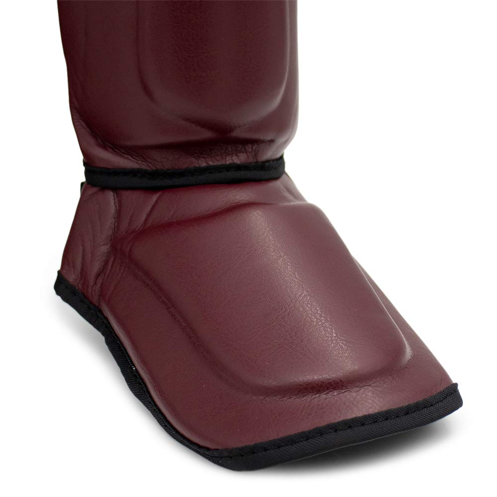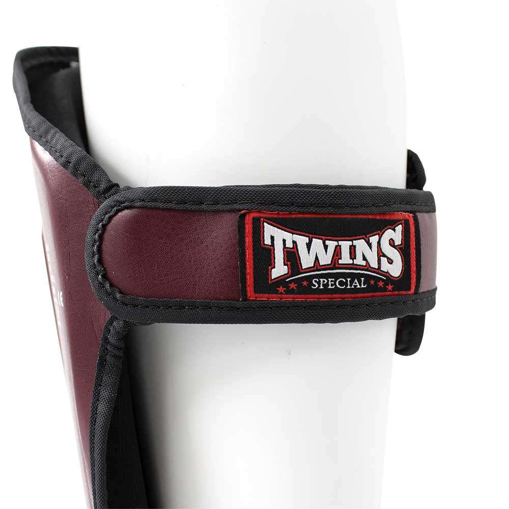 These fantastic burgundy shin guards from the top Thai brand Twins are anatomically shaped and follow the lines of the lower leg, calf and foot.