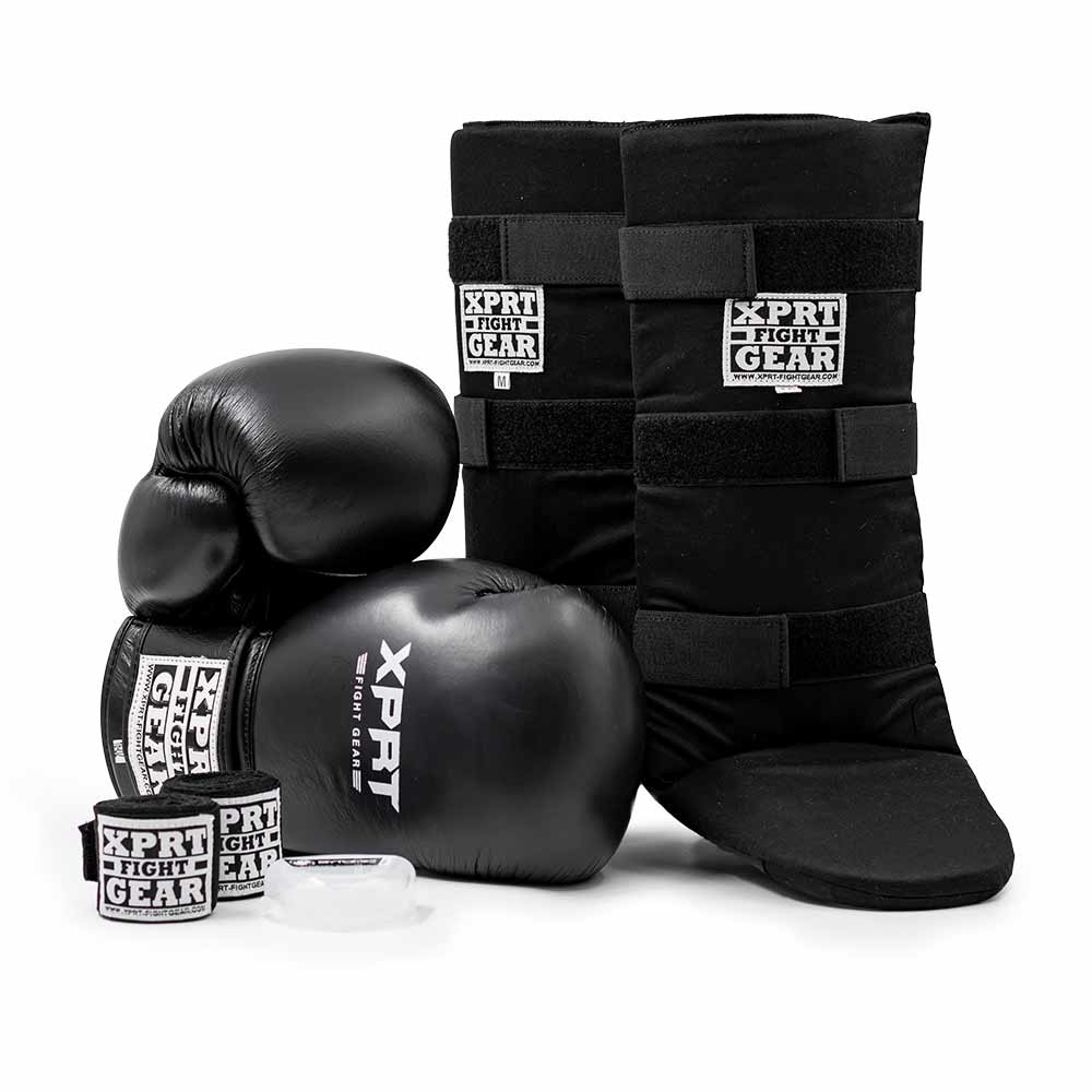 The XPRT Basic V1 Black Kickboxing Set is ideal for adults who are seriously starting to learn kickboxing and Muay Thai. This complete kickboxing set is very competitively priced and offers high-quality materials. For example, the XPRT boxing gloves are made of genuine leather.