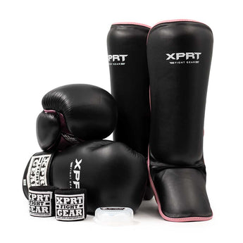 The XPRT Top V1 Black Pink Women's Kickboxing Set is ideal for adults who are serious about starting kickboxing and Muay Thai. This black and pink kickboxing set for women is very competitively priced and offers high-quality materials. For example, the XPRT boxing gloves are made of genuine leather.