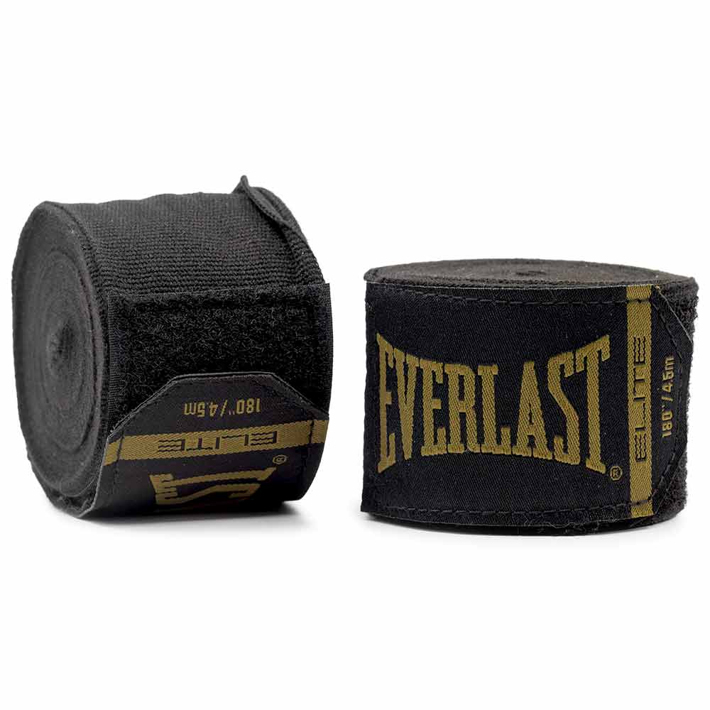 De licht-elastische bandages zijn gemaakt van een ademend materiaal en worden per paar geleverd. De Bandages Everlast Elite Boxing Zwart zijn beschikbaar in de maat 455 cm. De bandages sluiten met een handige klittenbandsluiting en beginnen uiteraard met een lusje voor de duim.