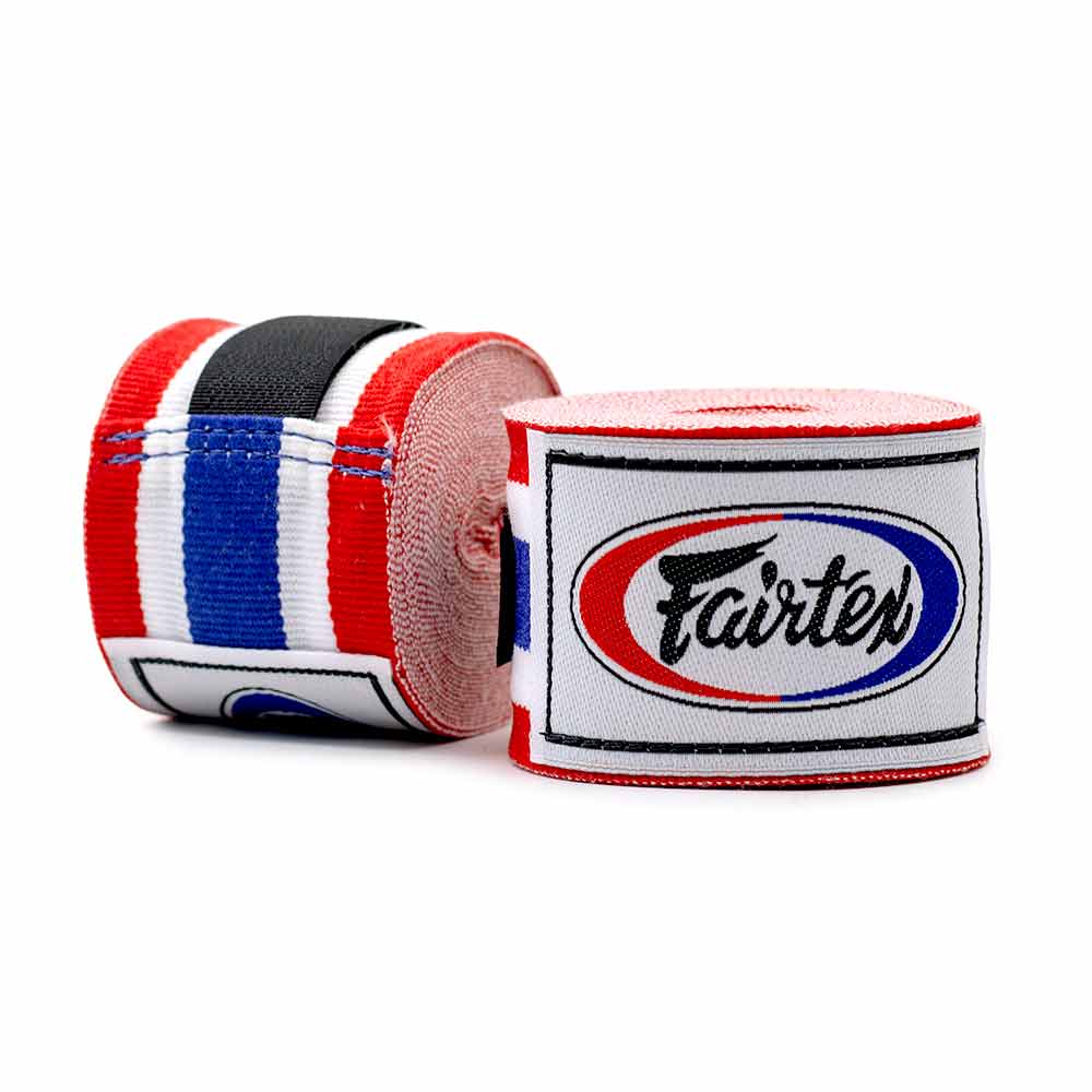 De licht-elastische Bandages Fairtex Thailand Katoen worden per paar geleverd en zijn beschikbaar in de standaardlengte van 180" (450 cm).