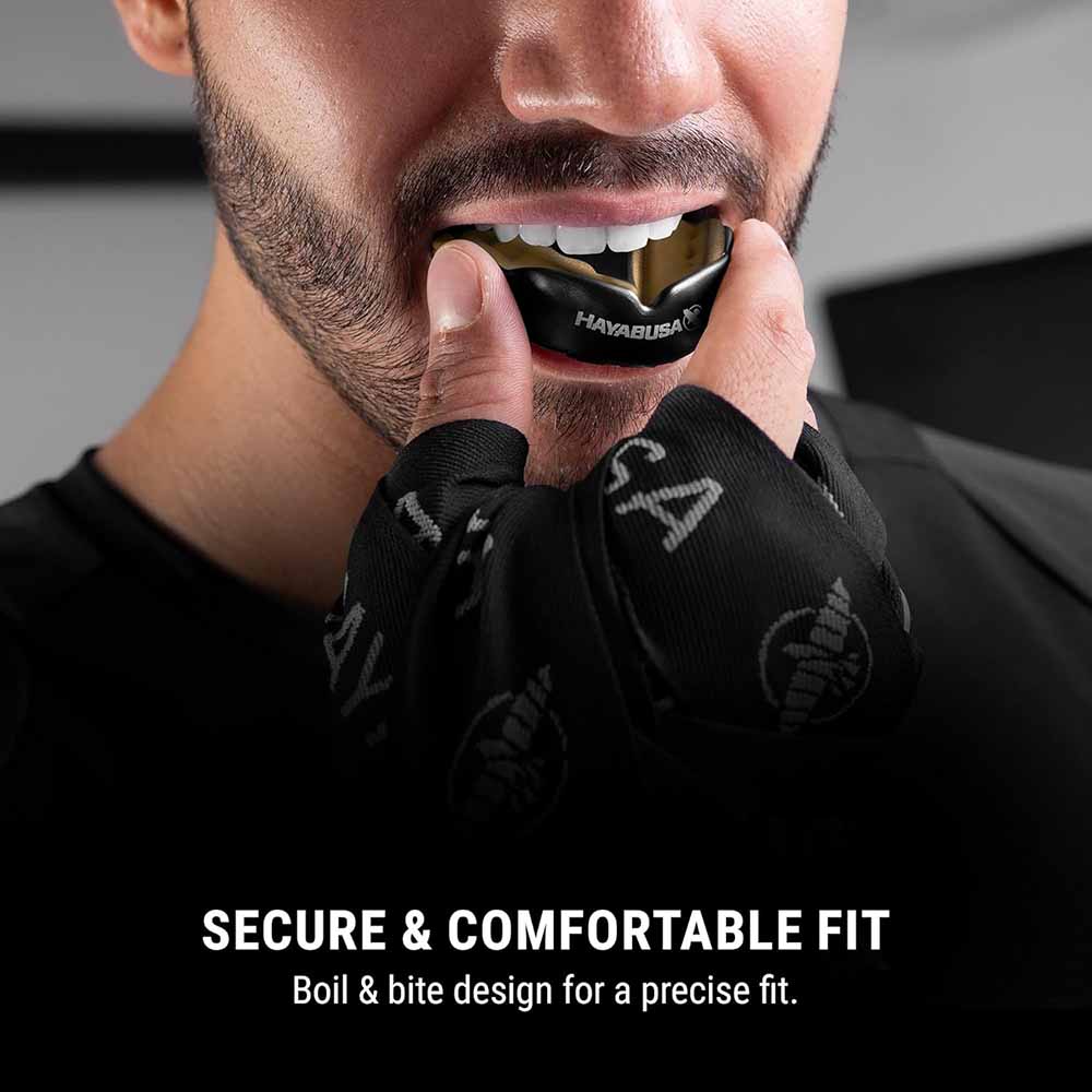 Heel fijn aan het Bitje Hayabusa Black Gold is dat je ook uitstekend kunt praten en ademen. Hayabusa is de onbetwiste leider op het gebied van vechtsportartikelen. Door een combinatie van technologie en design zorgt Hayabusa voor optimale prestaties. De producten van Hayabusa zijn zowel geschikt voor professionele en recreatieve sportbeoefenaars. Het Hayabusa bitje moet je, zoals vele mondbeschermers, wel passend maken.