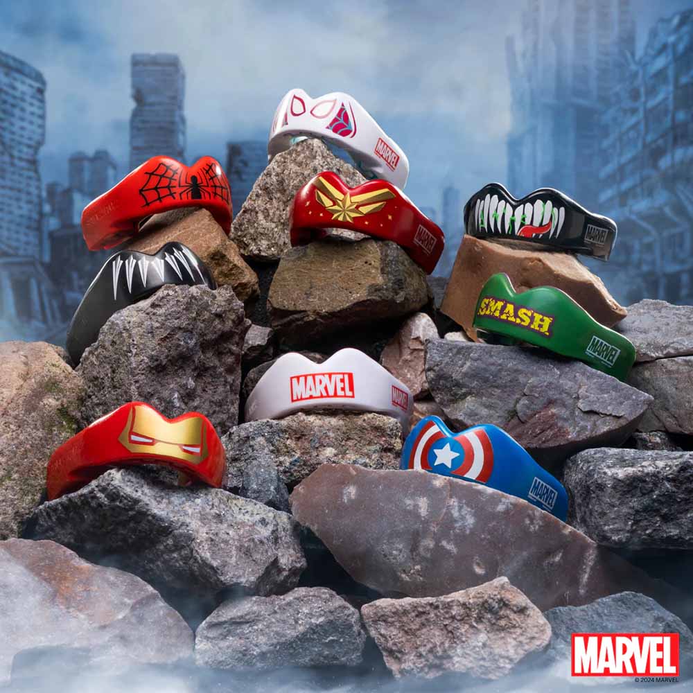 Deze gebitsbeschermer uit de nieuwe Marvel Series van SafeJawz is gemaakt uit 2 lagen voor optimale demping.