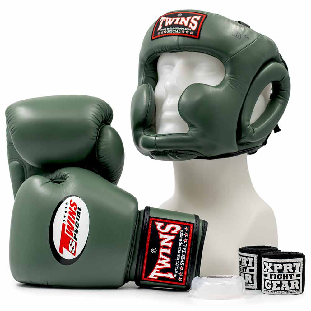 De Boks set Twins Special Groen bevat de allerbeste bokshandschoenen en hoofdbeschermer van het bekende vechtsportmerk Twins. De complete set voor klassiek boksen kenmerkt zich door de super goede pasvorm, hoge duurzaamheid, super kwaliteit materiaal en handgemaakte kwaliteit uit Thailand.