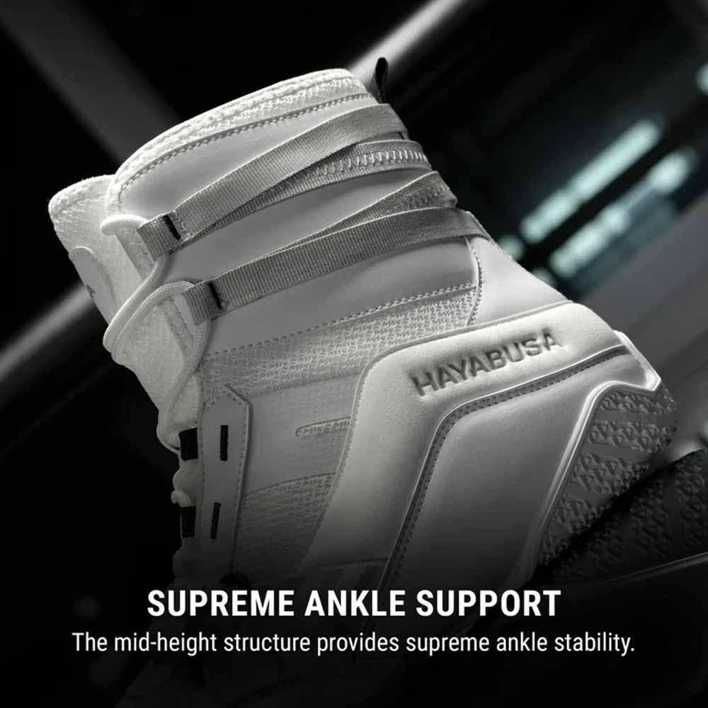 Dit topmodel Hayabusa boks schoenen zijn verkrijgbaar in diverse maten. Deze geweldige mid-top schoenen zijn flexibel en fijn om te dragen in zowel vrije tijd als tijdens de trainingen. Je kunt ze zowel indoor als outdoor gebruiken door de fijne pasvorm.