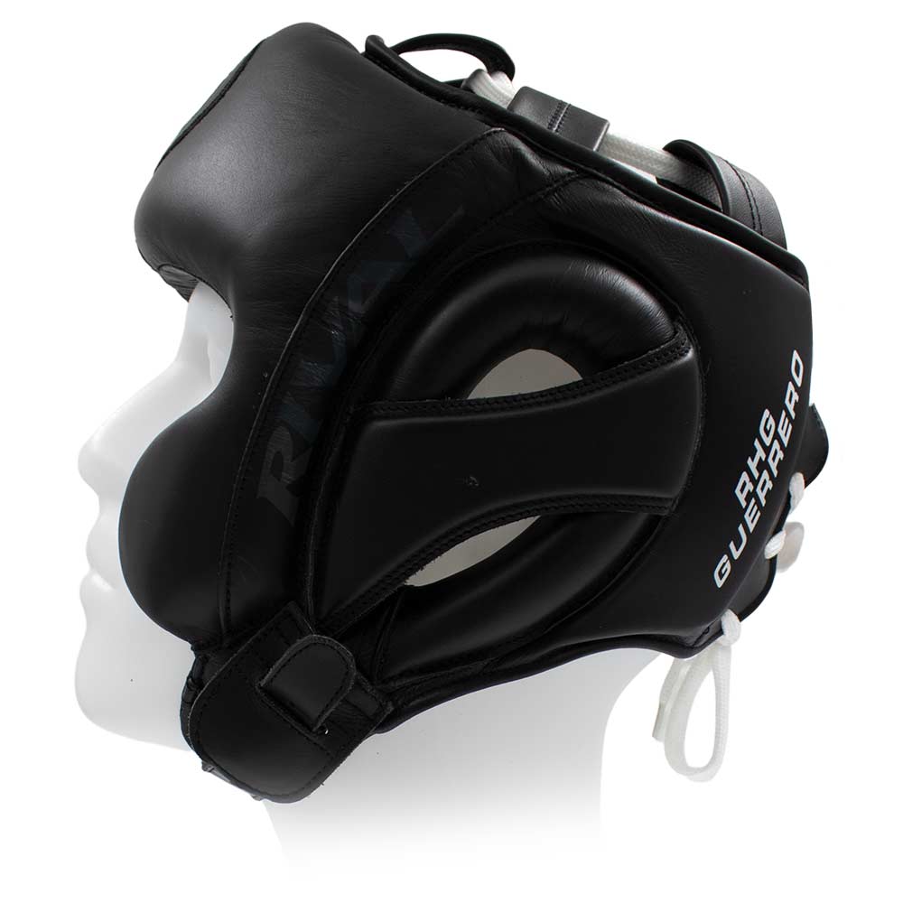 De Hoofdbeschermer Rival RHG-Guerrero Black is compleet met mooie, onopvallende wangbeschermers voor een ongeëvenaard gezichtsveld. De headgear is daarnaast voorzien van een vernikkelde, stalen gesp voor een gemakkelijke aan/uit-kinband.