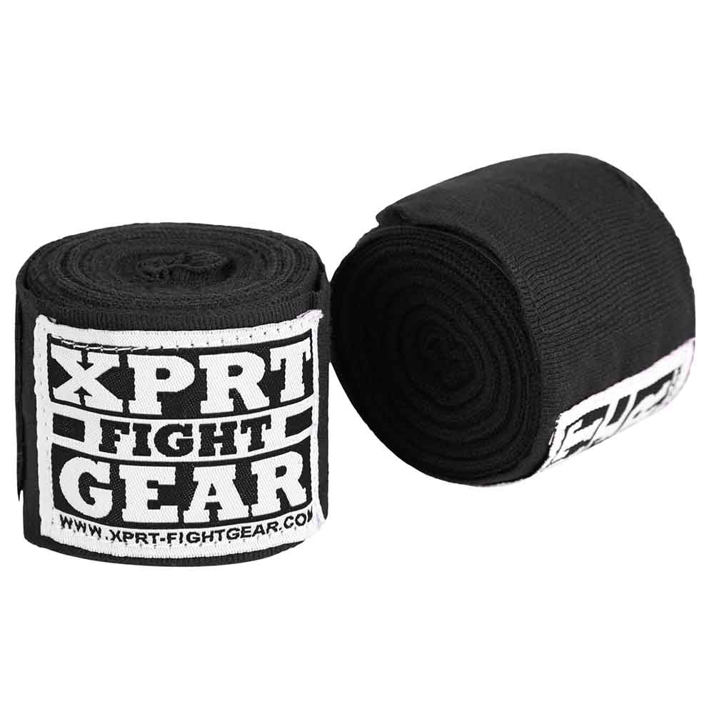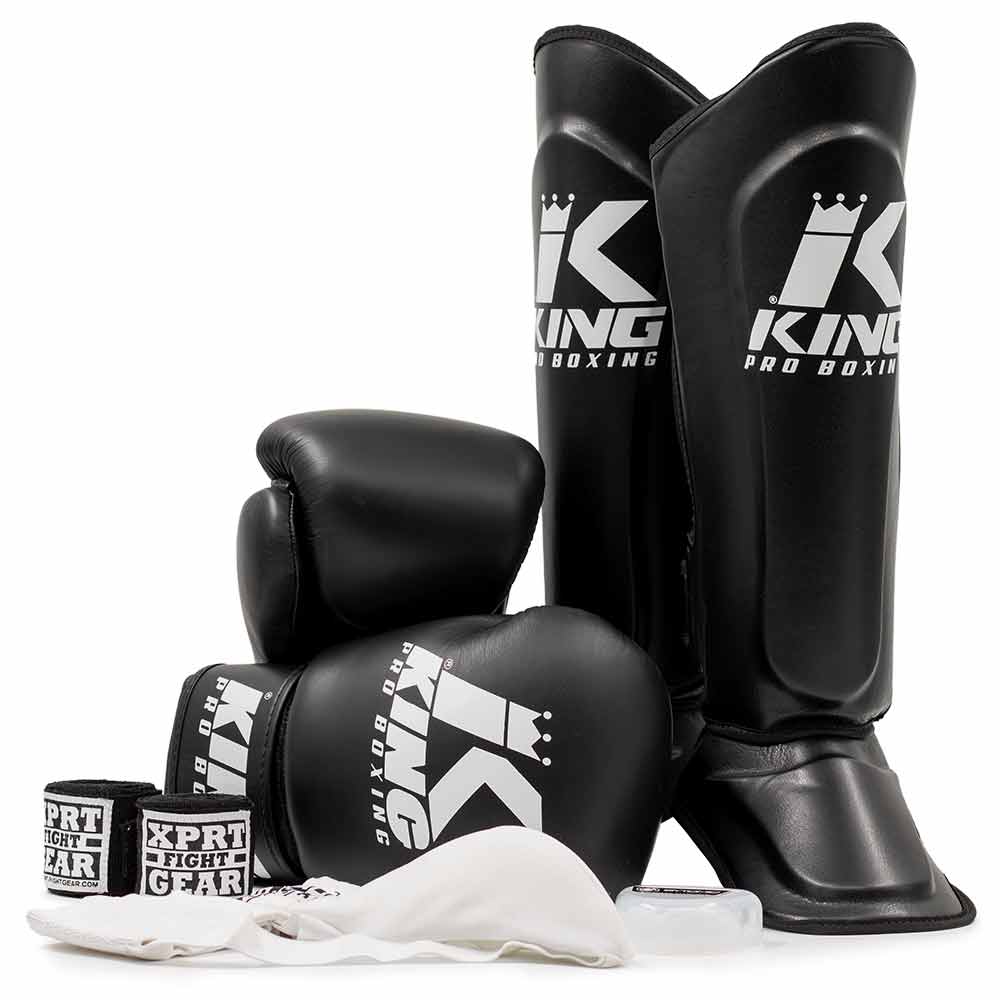 De Scheenbeschermers King Pro Boxing SGL7 Black zorgen voor maximale demping en perfecte pasvorm, terwijl de Bandages XPRT Easy Stretch zwart je handen en knokkels optimaal beschermen.