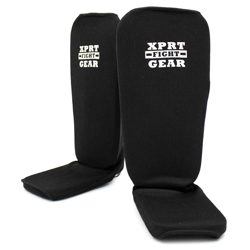 Natuurlijk zitten er ook bijpassende XPRT scheenbeschermers in deze blauw-zwarte kinder kickboks set. Om deze kickboksset extra cool te maken zijn de scheenbeschermers in een bijpassende neutrale kleur zwart geleverd.