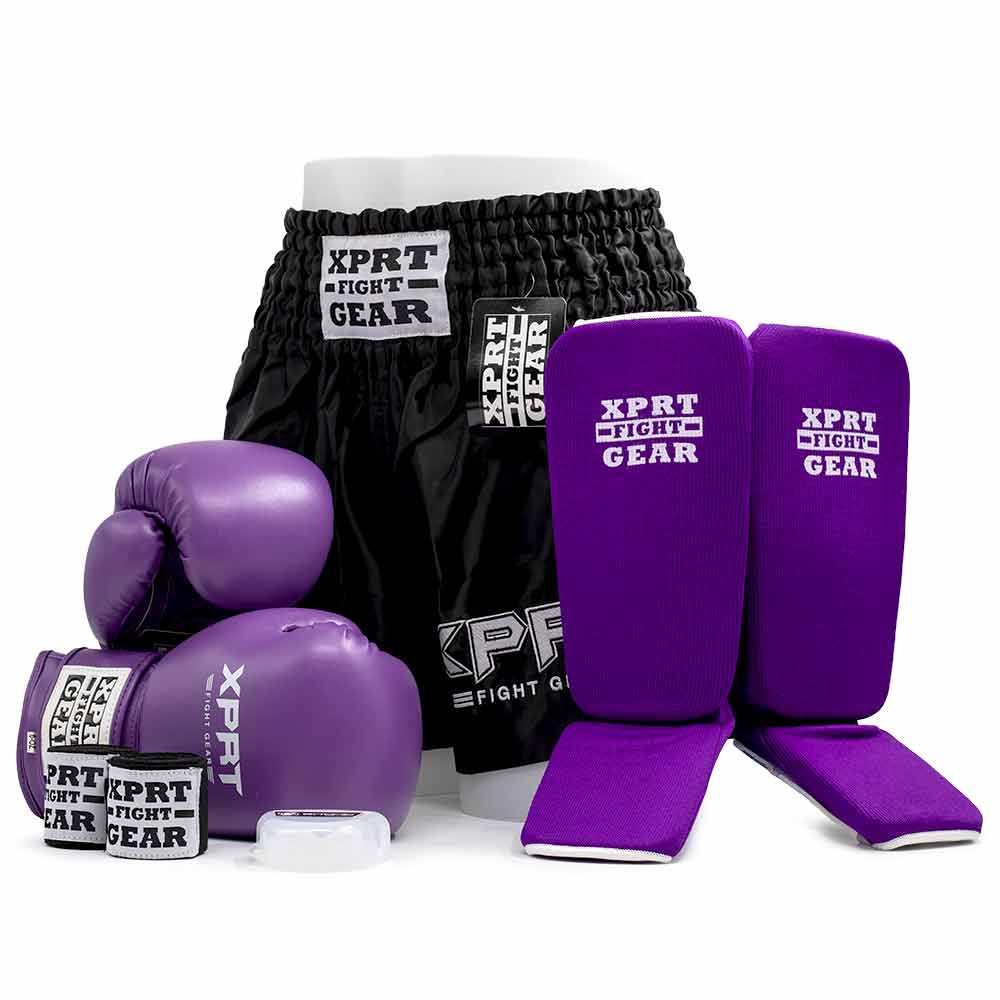 De kinder kickboks set XPRT Paars bevat supergave bokshandschoenen en fijne scheenbeschermers die er goed bij passen. Deze paarse kickboks set voor jongens en meisjes is van het bekende vechtsportmerk XPRT Fight Gear en is prima geschikt voor kinderen van circa 5 t/m 11 jaar.