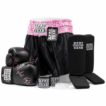 De Meisjes kickboks set XPRT Fight Girl Black Pink bevat supergave bokshandschoenen en stoere scheenbeschermers die er perfect bij passen. De volledige kickbox set is van het bekende vechtsportmerk XPRT Fight Gear en is prima geschikt voor meisjes van 4 t/m 12 jaar.