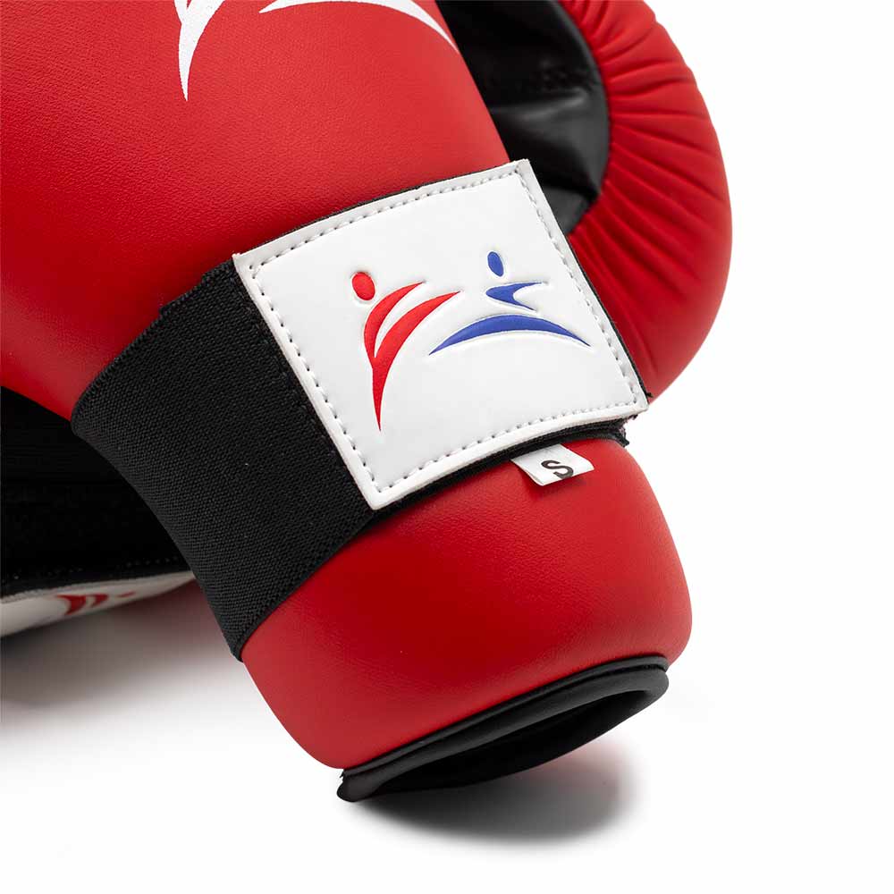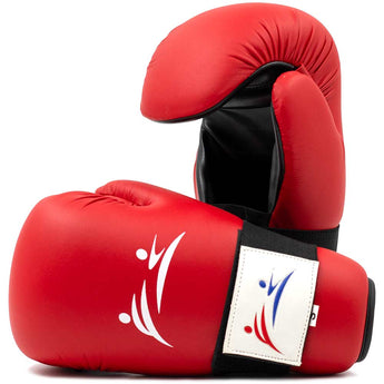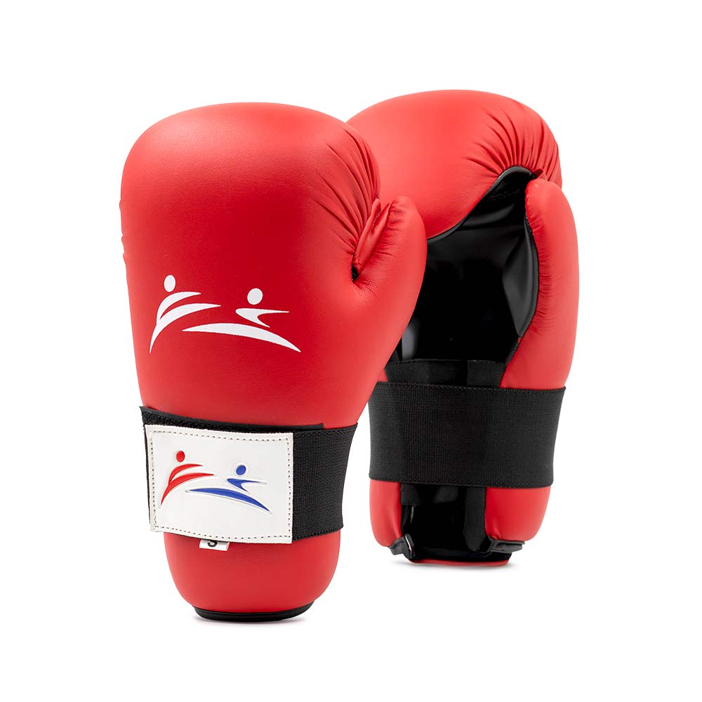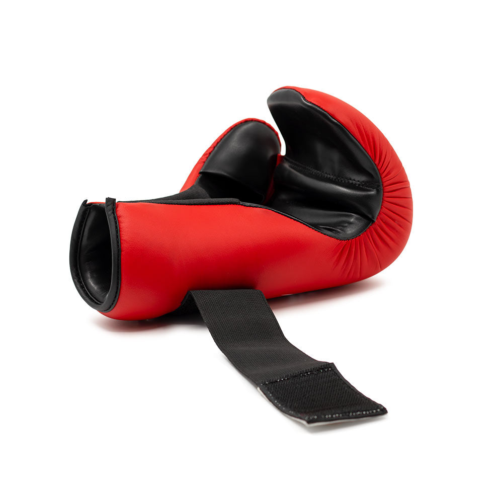 De rode Taekwondo handschoenen zijn gemaakt van PU en hebben een one-mold schuimvulling, open handpalm, duimbeschermer en lange elastische sluiting. Deze safety punches zijn te gebruiken voor zowel trainingen als semi-contact wedstrijden.